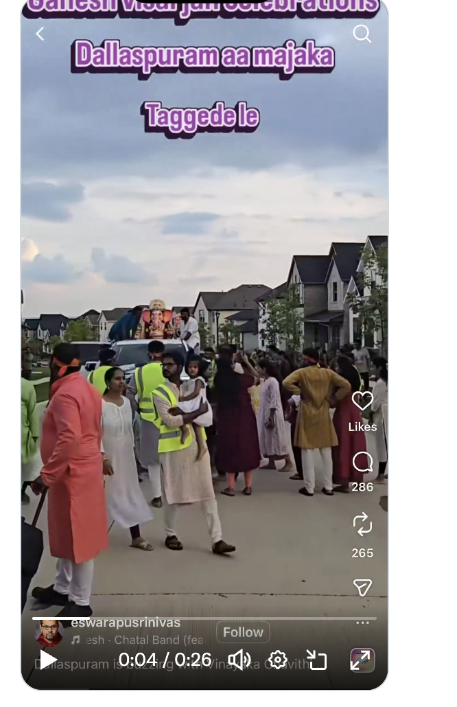 The post, which showcased an old festival footage of a Ganesh Chaturthi procession in a Dallas-area suburb, has caused controversy online. The video depicts men and women dressed in traditional Indian attire playing drums and celebrating in a shopping center car park. The caption of the post claims that Dallas is turning into “Dallaspuram” and blames the visa system for this transformation. It suggests that H1B visas are being misused to import Indian workers for basic jobs that could be done by Texans and criticizes these workers as not being top global talent.